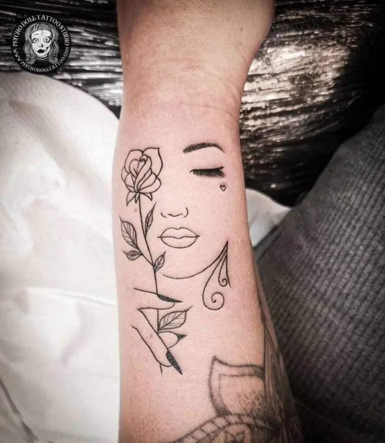 tatuagens de linhas finas em Psycho Doll Tatuagem